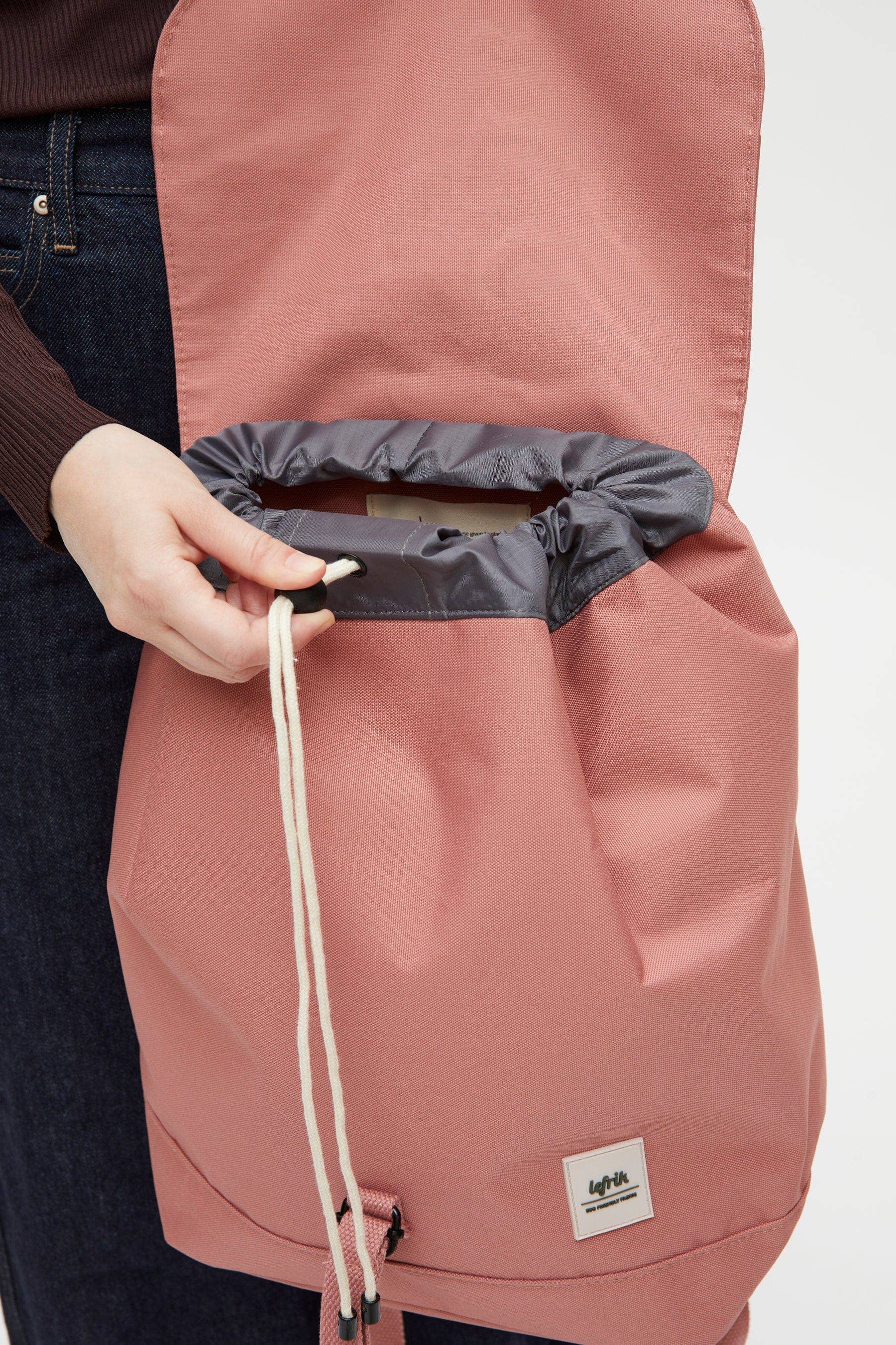 Its rounded silhouette and large flap closure define the brand's most iconic model. This 19L capacity backpack features a large main compartment, a padded laptop pocket for laptops up to 13.6", and two separate organisers for small items. It also has a quick access pocket on the flap, and a security pocket on the back. Padded, adjustable handles. Front fastening with metal hook. Its OXFORD RPET fabric makes it lightweight, water resistant and vegan. Wash cold. Air dry.