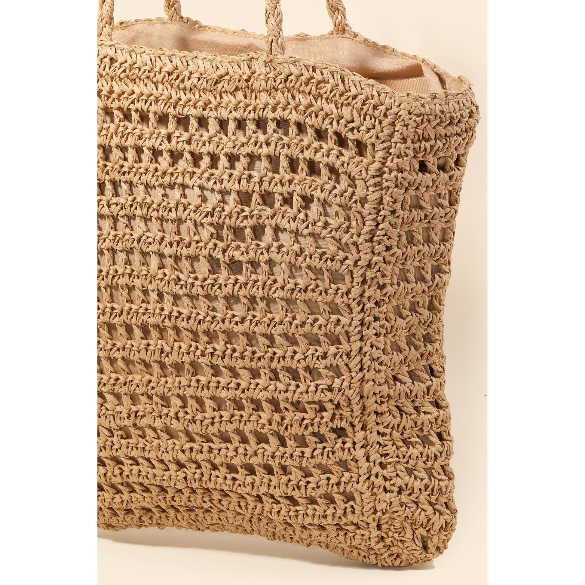 Perfect for any fashion-forward individual, this tote bag evokes a captivating straw braided beach design. This item is perfect for adding some color and vibrancy to any outfit. Available in IV and KA. This tote bag approximately measures: Length: 16 Inches Height: 16 Inches