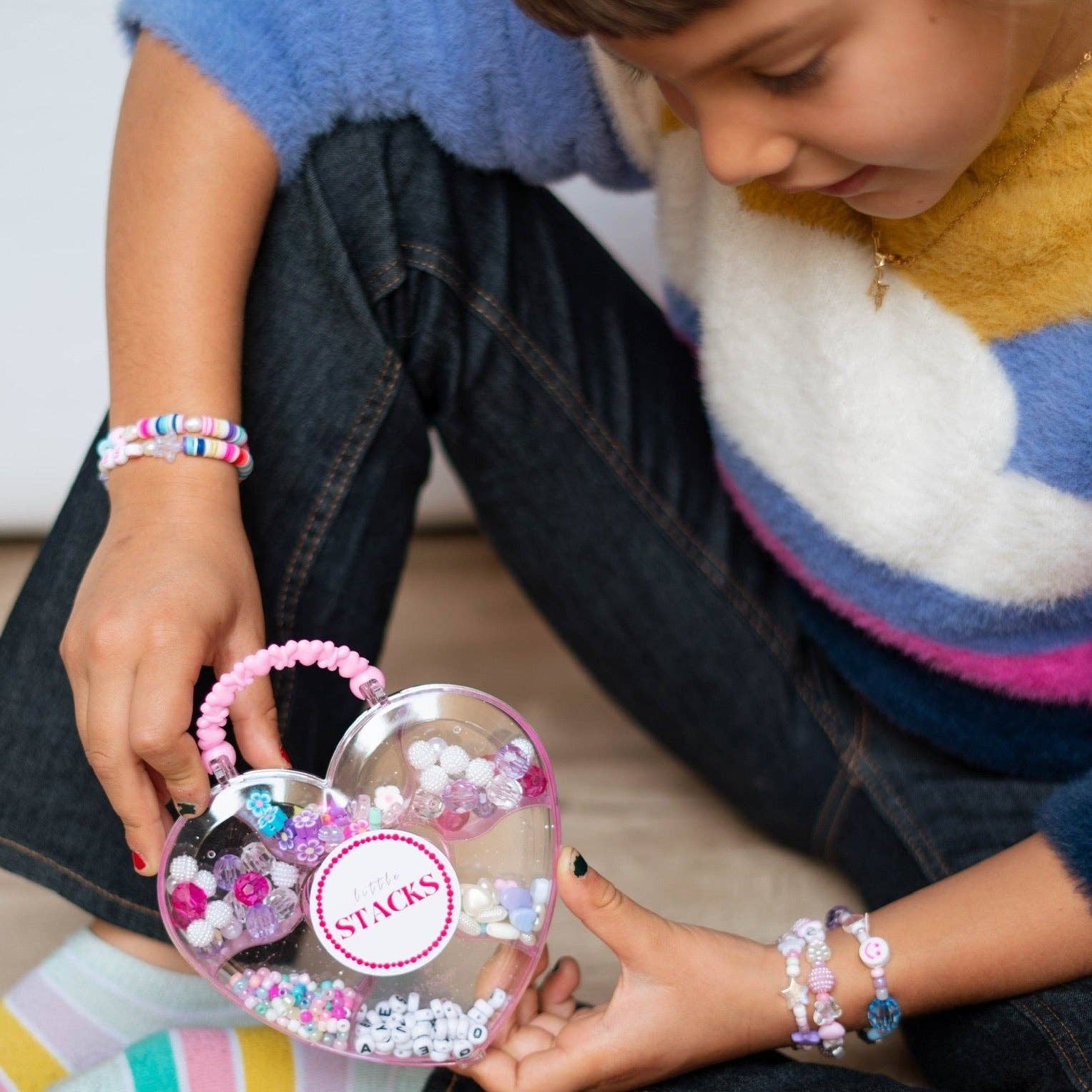 Our Pretty in Pink Heart Kit comes with a variety of beads to create your own bracelets or necklace. This kit features black and white alphabet beads, acrylic beads, heart beads, flower beads, iridescent hearts in pink and clear, and pink and clear string. This kit also features 1 white heart charm. Each Kit is subject to variation.