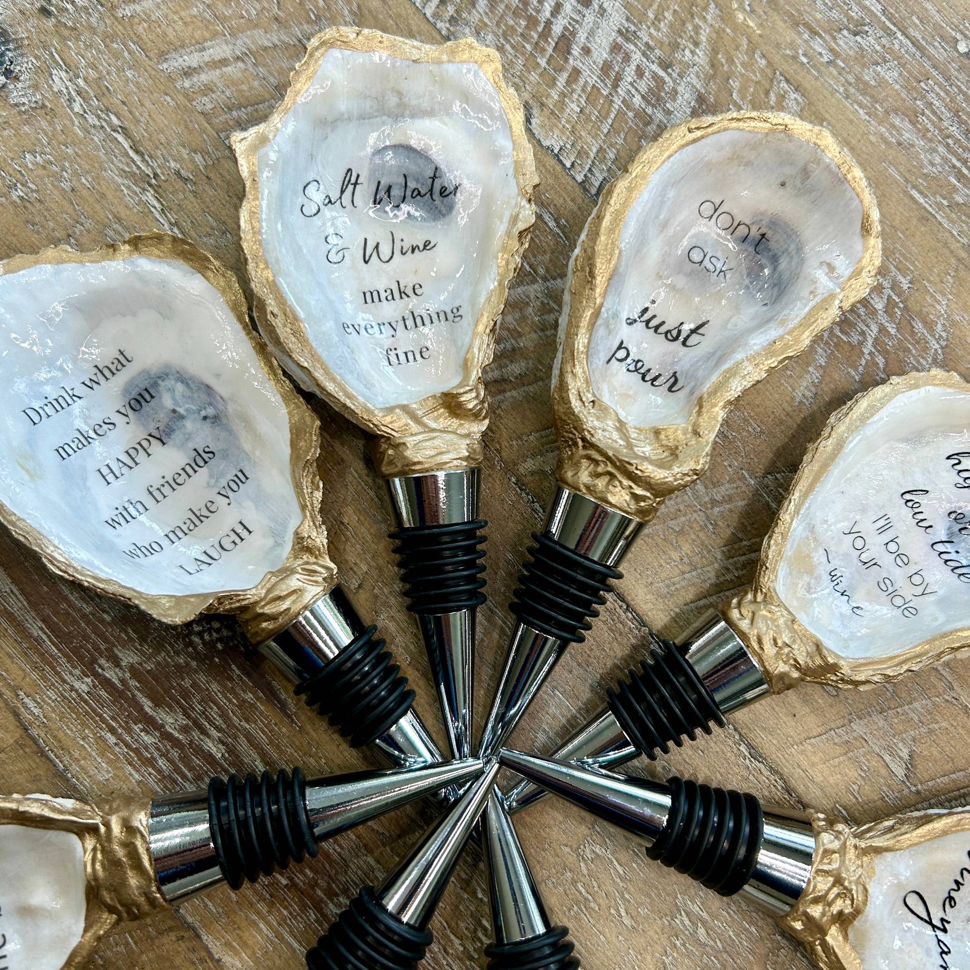 Elevate your entertaining and home decor with our fun wine or decorative bottle stopper. These make the perfect gift for hosts, housewarming parties or birthdays. Gorgeous oyster shells are harvested, cleaned and hand crafted to create unique stainless steel bottle stoppers. Each shell is one of a kind and measures 2.5 to 4 inches long.